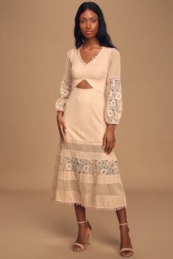 Lulus Modern Menagerie Blush Lace Cutout Long Sleeve Midi Cottagecore Dress Sz L$80Inglewood, CA