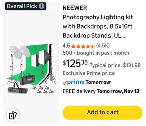 NEEWER Photography Lighting kit with Backdrops, 8.5x10ft Backdrop Stands, UL Certified 5700K 800W Equivalent 24W LED Umbrella Softbox Continuous Light$100Plano, TX