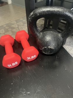 2 brand new 3lb weights and a 15lb kettlebell$20Peabody, MA