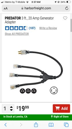 BRAND NEW !!! Predator 3 Ft 20 amp Generator Adapter $20Wilmington, CA