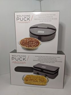 Wolfgang Puck 3.6QT rectangular Covered Glass Baker With Insulated Carry Bag - Plus 9" Glass Pie Baking Dish W/ Insulated Carry Bag NEW $68City Of Industry, CA
