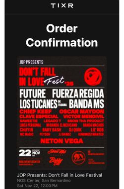 JOP Tickets Don’t Fall I’m Love $200San Diego, CA