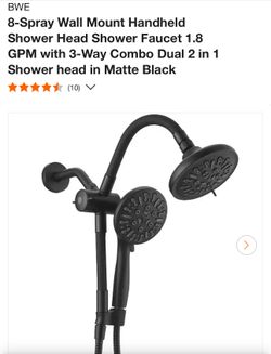 BWE Handheld Shower Heads 8-Spray Wall Mount Handheld Shower Head Shower Faucet 1.8 GPM with 3-Way Combo Dual 2 in 1 Shower head in Matte Black #99 R$56Goodyear, AZ