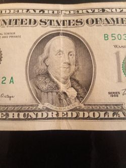 Rare Series 1988 One Hundred Dollar Bill$185San Bernardino, CA