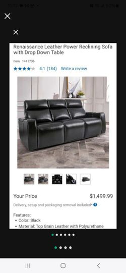 Black Leather Power Reclining Sofa with Drop Down Table$600Miami, FL