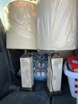 Pair Of Marble Look Lamps W Shades$60Orange, CA