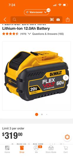 DEWALT FLEXVOLT 20V/60V MAX Lithium-Ion 12.0Ah Battery$200Vancouver, WA