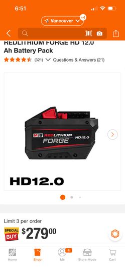Milwaukee M18 18V Lithium-Ion REDLITHIUM FORGE HD 12.0 Ah Battery Pack$200Vancouver, WA