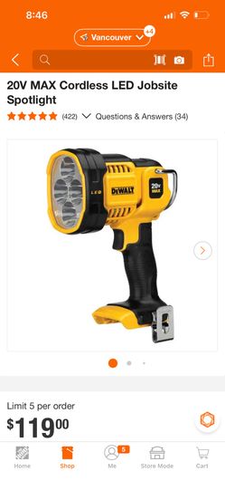 DEWALT 20V MAX Cordless LED Jobsite Spotlight$90Vancouver, WA