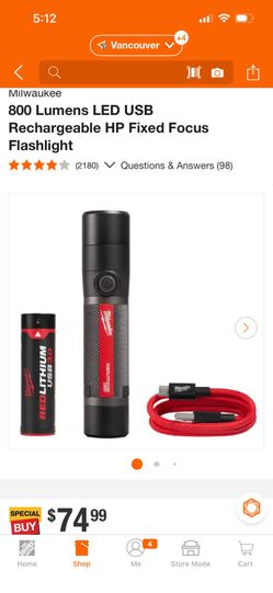 Milwaukee 800 Lumens LED USB Rechargeable HP Fixed Focus Flashlight$50Vancouver, WA