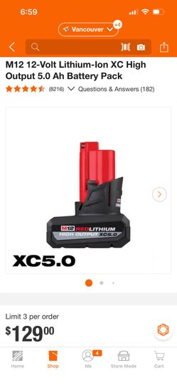 Milwaukee M12 12-Volt Lithium-Ion XC High Output 5.0 Ah Battery Pack$80Vancouver, WA