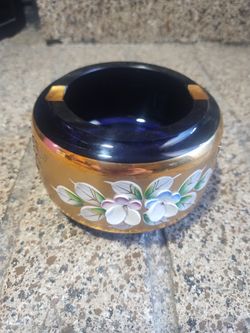 Czech Bohemian Glass Ashtray Cobalt Blue Glass Hand Painted Dish $20Fort Worth, TX