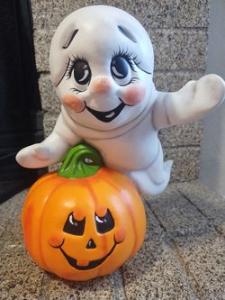 Vintage Ghost On Pumpkin Ceramic Halloween 1988 Signed$25Fort Worth, TX