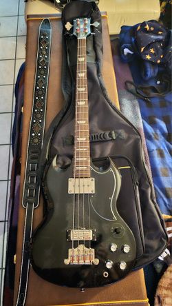 Epiphone Ebony SG Bass Guitar W/ All Leather Strap Amd Padded Travel Bag! $375!!$375Brady, WA