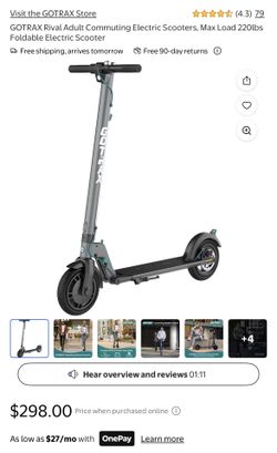 GOTRAX Rival Adult Commuting Electric Scooters, Max Load 220lbs Foldable Electric Scooter$250Hesperia, CA
