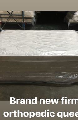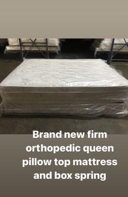 Brand new firm orthopedic queen pillow top mattress and box spring.$300Atlanta, GA
