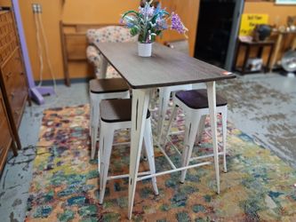 Brown And White Kitchen Table Set with 4 Stools For Sale
