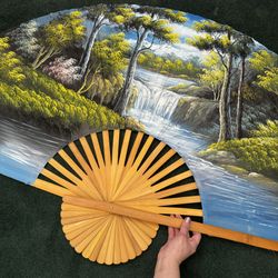 Folding Fan Hand Painted Wall Decor Forest Waterfall$20Upland, CA