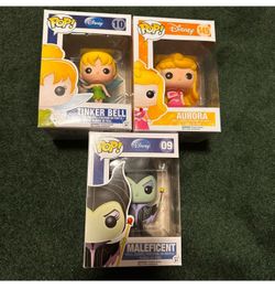 funko pop authentic figures: tinker bell, aurora, and maleficent$30Claremont, CA
