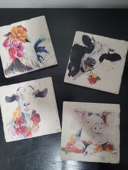 Set Of Natral Stone Coaster, Farm Animal Themed: Cow, Pig, Rooster, Goat$15Loves Park, IL