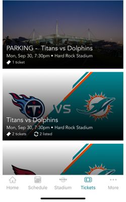 Dolphins Vs Titans Parking Pass$125Pembroke Pines, FL