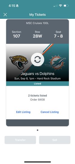 Jaguars Vs Dolphins $300Hollywood, FL