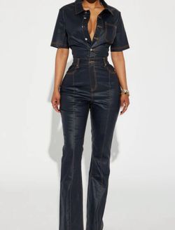 Fashion Nova Time To Leave Dark Denim Jumpsuit size Large women’s NWT open back$40Jacksonville, FL