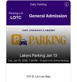 Lakers Vs hawks 1/13 Parking Pass$20Upland, CA
