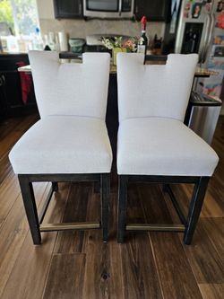 2 Designmaster (P71) Darby Counter Stool Height, Swivel, Ivory Linen On Dark Wood Finish with Brass Kick Plate$875Everett, WA