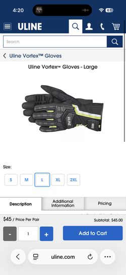 Uline Vortex™ Gloves - Large$30Victorville, CA