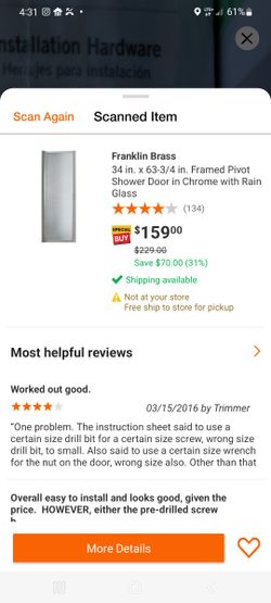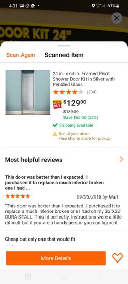 34" Stand Up Shower Door$50Raleigh, NC