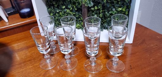 Vintage Set of Ball Stem Cordial Mini Flute Style Shot Glasses Clear Glass