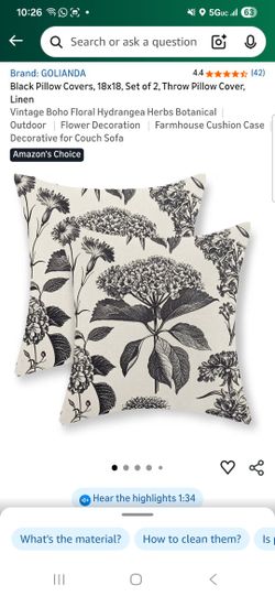 Black Flower Pillow COVERS- 18"X18"$7Surprise, AZ