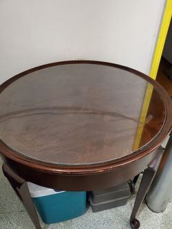 Round Real Wood Side Table With Glass Top$60Queens, NY