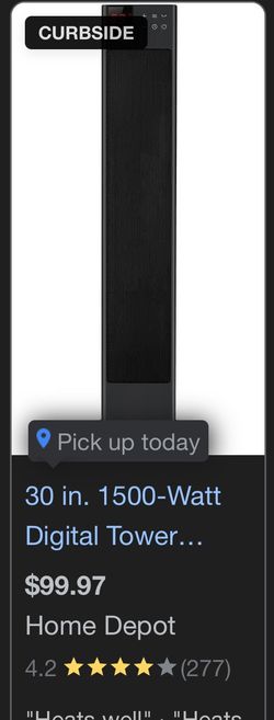 Pelonis30 in. 1500-Watt Digital Tower Ceramic Heater$60Detroit, MI