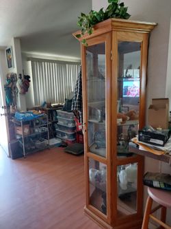 Oak curio cabinet$120Nuevo, CA