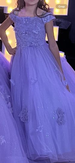 Girls Dress Size 12 Lavender With Butterfly's And Off The Shoulder With Straps Comes With Crinoline Under For More Volume It's Also Removable $20Hazard, CA