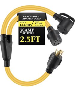 2.5 ft 30 Amp Generator Y Splitter Adapter Cord Compatible with NEMA L14-30P to TT-30R & L14-30R, Generator to EV/RV Charging and House Inlet Box, 8/2$40Lakeland, FL