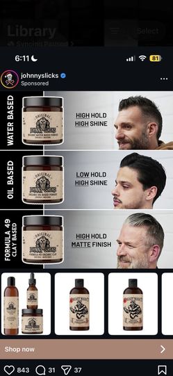 Johnny Slicks Organic Pomade 3 for $75 MSRP $100$70Honolulu, HI