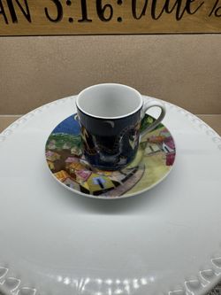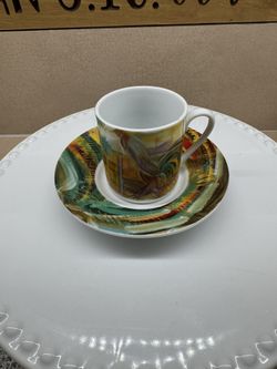 Fine China Espresso Cup & Saucer featuring abstract, colorful designs.$10Vlg Wellingtn, FL