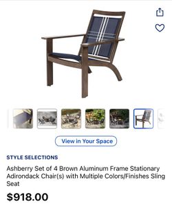 Style Selections Ashberry Set of 4 Brown Aluminum Frame Stationary Adirondack Chair(s)$400Arrowhed Farm, CA