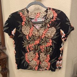 Vintage Hilo Hattie Black Orange Pineapple Tropical Floral Print Blouse-Small$35Huntington Beach, CA