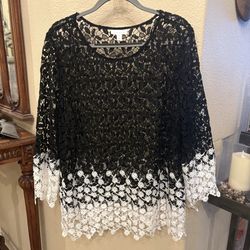 NWT~CHARTER CLUB Women Black White Floral Crochet Lace Top Size XL$45Huntington Beach, CA