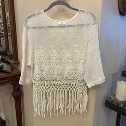 ZARA Women Cream Crochet Fringe 3/4 Sleeve Boho Festival Concert Top Size Small$38Huntington Beach, CA