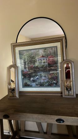 Home Interior Set Frame Swans In A Lake”33inch”tall “32”wide With 2candleholders And2glasses Good Condition No Broken No Cracks$70Norwalk, CA
