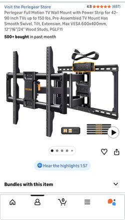 Full Motion TV Wall Mount with Power Strip for 42–90 Inch TVs up to 150 lbs, Pre-Assembled TV Mount Has Smooth Swivel, Tilt, Extension, Max VESA 600x$85Bedford Park, IL