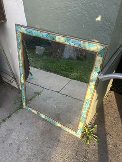 Leaf it to me; Vintage Floral Wood Framed Mirror in Blues and Golds:$65Pomona, CA