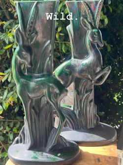 Take the Leap; Late 40s-Early 50s Art Deco/Midcentury Iridescent Green Royal Haeger Vases:$110Pomona, CA