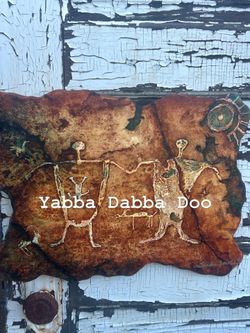 Yabba Dabba Doo! Pair of Vintage Signed Original ‘Modern Primitive’ Paintings by Sandra Brestel:$250Pomona, CA