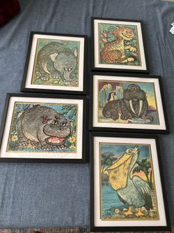 Under glass menagerie; Five As Found Vintage 1960s Framed Embossed Prints by Edna Viera (Monte)$45Pomona, CA